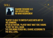 Shadow Exchange (그림자 교환) is a teleportation skill unique to the Shadow Monarch.