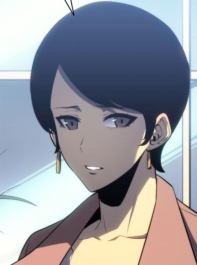 Jinhee is a young woman appearing to be around Jinwoo's age with short black hair in a bob cut, large gray eyes, and a slender build. She is usually seen wearing a simple coat and gold earrings.[2]