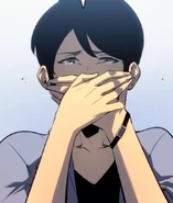 Shortly after a S-Rank Gate suddenly spawned in Tokyo, Jinhee learned that her father had been diagnosed with Eternal Slumber and promptly returned home to help take care of him. After Myung-Han succumbed to the effects of the disease and fell into a coma, Jinhee arrived at the hospital late at night to check on him. While walking to her father's hospital room, she noticed a young man about her age walking down the hallway and almost immediately recognized him as the Sung Jinwoo. Confused as to why he was there, Jinhee headed on to her father's room and discovered that he had miraculously woken up on his own, bringing her to tears.[3]